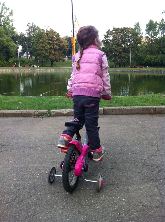 Дочка решила от мамы не отставать и теперь я утром наматываю по 40 км перед работой, а она по 3 км после садика