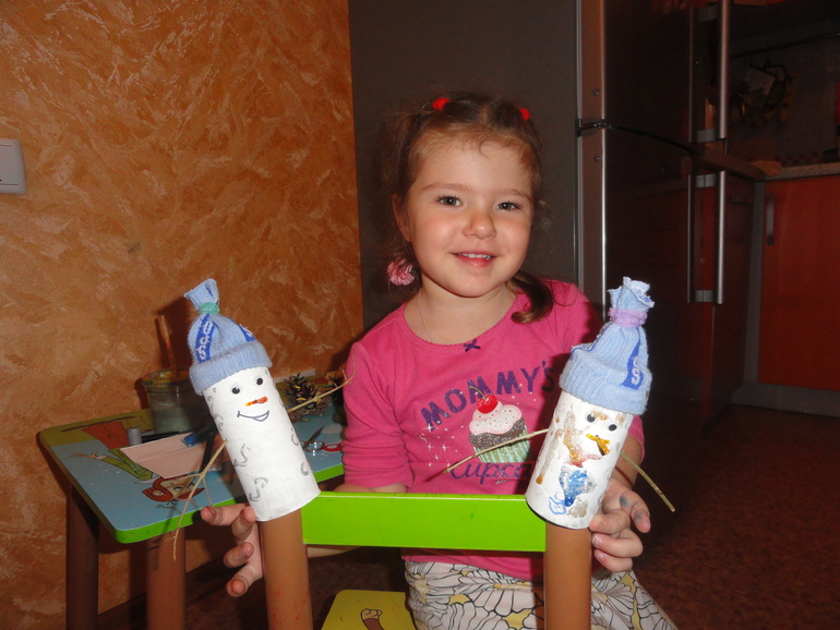 Вместе делали снеговичка. Правда каждый своего( Катин остался дома, как самый красивый)))