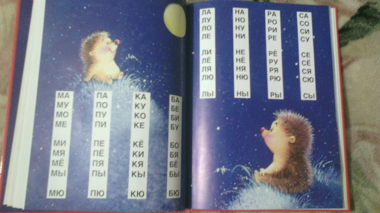 Обучение чтению у меня было запланировано где-то лет после четырех) Но как-то подумала,что буквы-то Маша давно знает,можно не торопясь начинать. У нас букварь Бахтиной.Нравятся мне его странички на ощупь, нравятся картинки и конечно вкладыш с буквами. Их вырезали и использовали для повторения.
