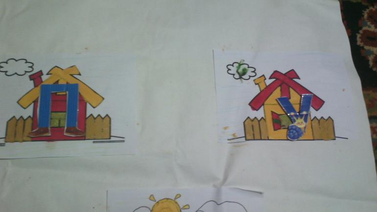 Чтобы научить читать слоги нарисовала такие домики.Сначала буквы жили в разных домиках