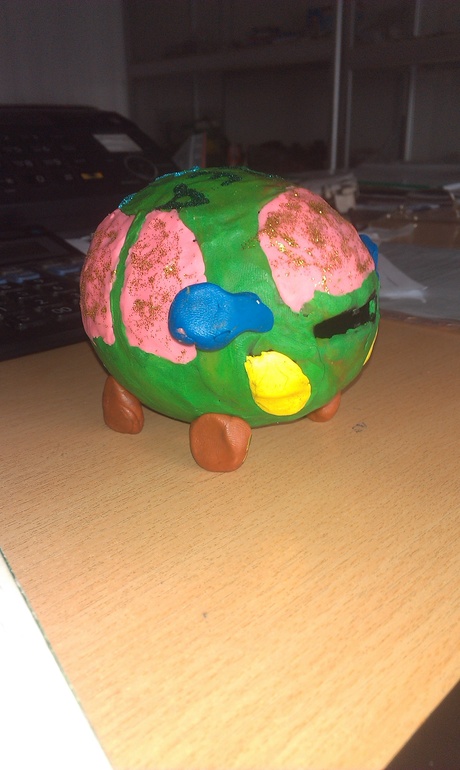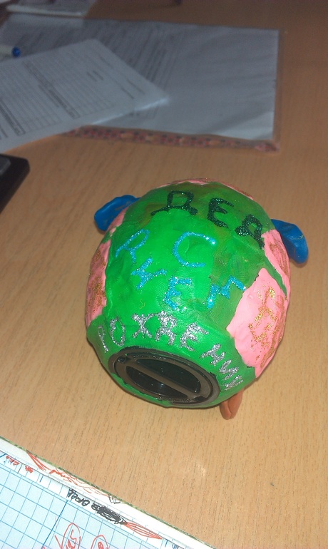 Оля приготовила дедушке такой подарочек, сделали вчера с мужем машину из копилки)))