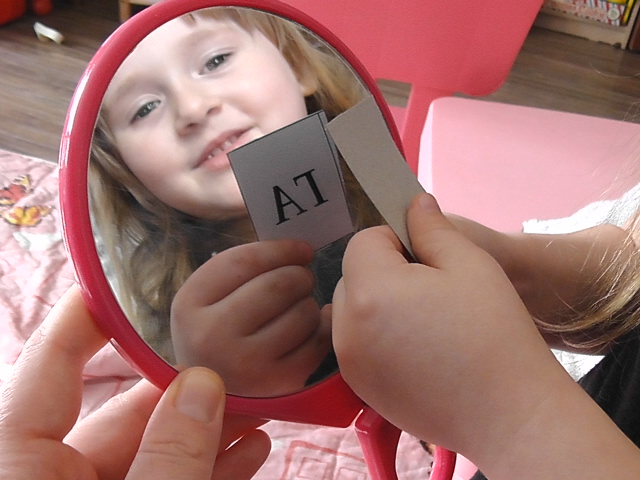 "зеркальное чтение" -наше любимое.на пальцах буквы показываем.