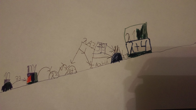 Тут мне все стало ясно. Даня где-то в черновиках, нашел "эту картинку" и поинтересовался у папы, что это. Папа, конечно же, ему все разъяснил и ребенок просто видимо это для себя закрепил...