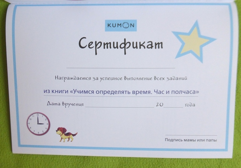 KUMON. Учимся определять время. Час и полчаса, возраст 4-5-6 лет
