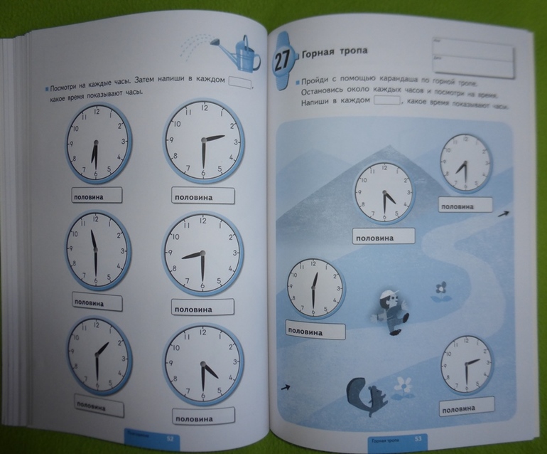 В 27 уроке игровое задание «Горная тропа» на закрепление понятия половины часа
