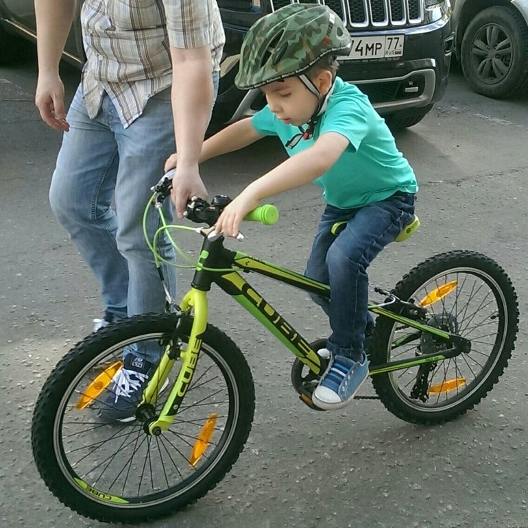 Правда, есть пока проблемы с торможением и залезанием на велик. Высоковат он пока для него. Но муж считает, что это дело наживное и все будет с опытом. Теперь охотно в это верю!!))