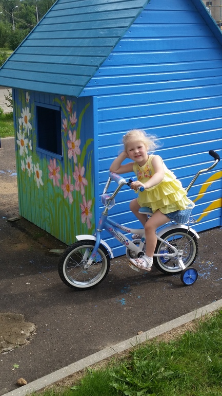 Гуляем мы в основном на велике или самокате, роликов побаивается (оставили на следующий год).