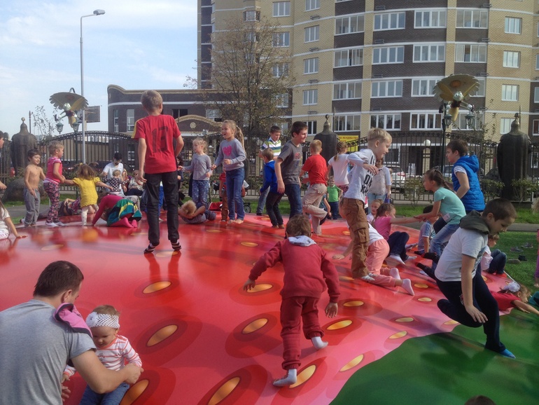 4) батут. По сути большая надувная подушка, а вокруг лавочки для взрослых.