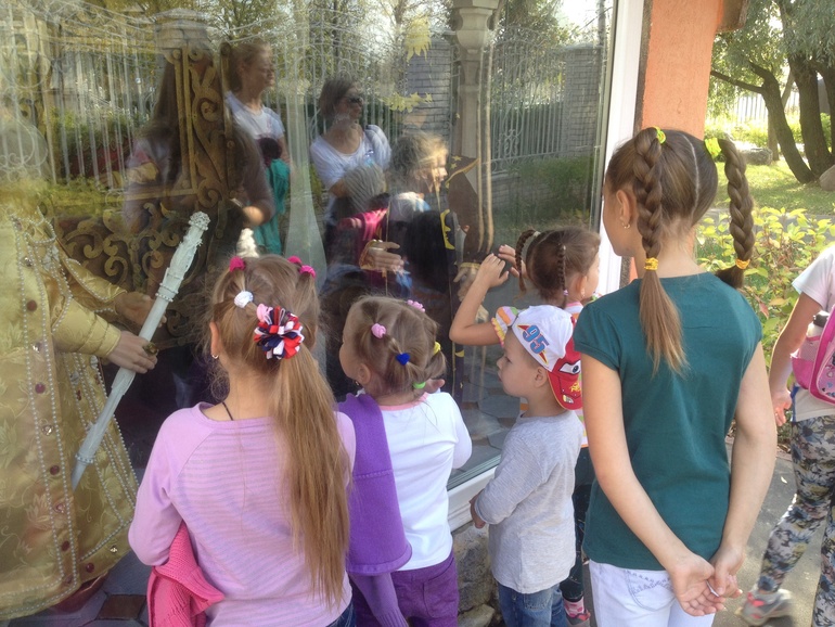 1) домики, в которых за стеклом происходит действие определенной сказки. Безумно красивые куклы и движения! Яркое солнце не позволило бсфотографировать происходящее за стеклом, но дети с удовольствием слушали и смотрели. Таких домиков было 3.