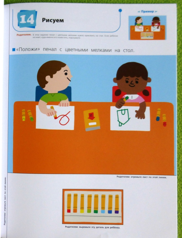 В тетрадке 31 задание. Эта тетрадь хорошо дополняет тетрадку Учимся вырезать.