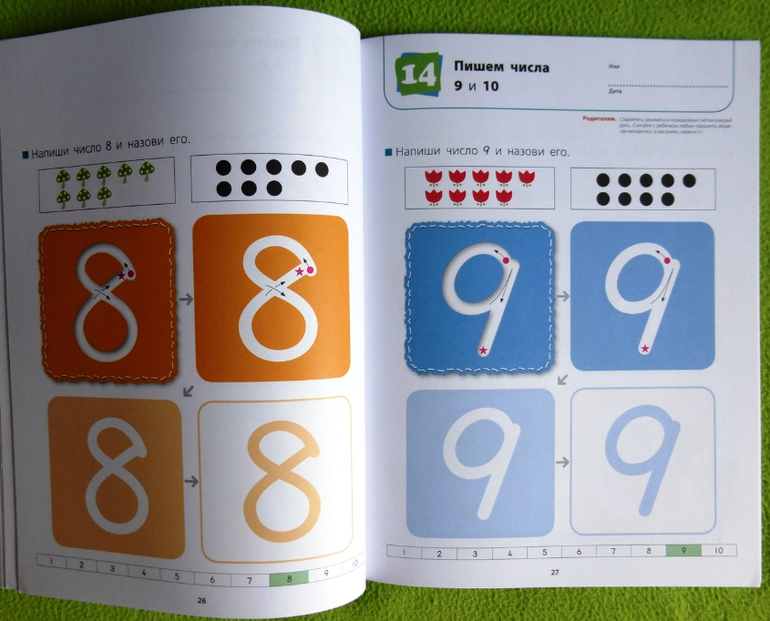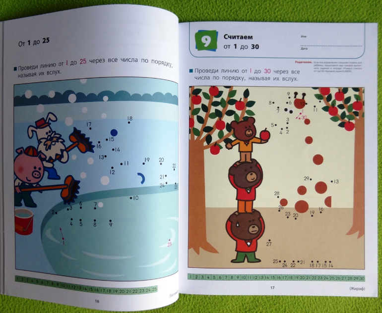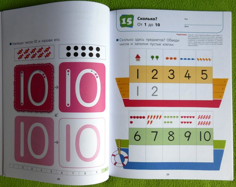 Внизу страничек полоски с цифрами, они определяют до какой цифры в конкретном задание осваивается порядковый счет, эта «выноска» также помогает ребенку лучше запомнить порядковый счет, особенно если ребенок визуал.