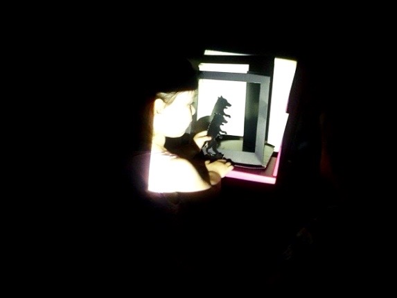 Мои дети сразу вспомнили театр теней из картона, который мы когда-то с ними делали. Не смотря на то, что это были заготовки к курочке рябе и красной шапочке, они вполне сгодились на этот вечер.