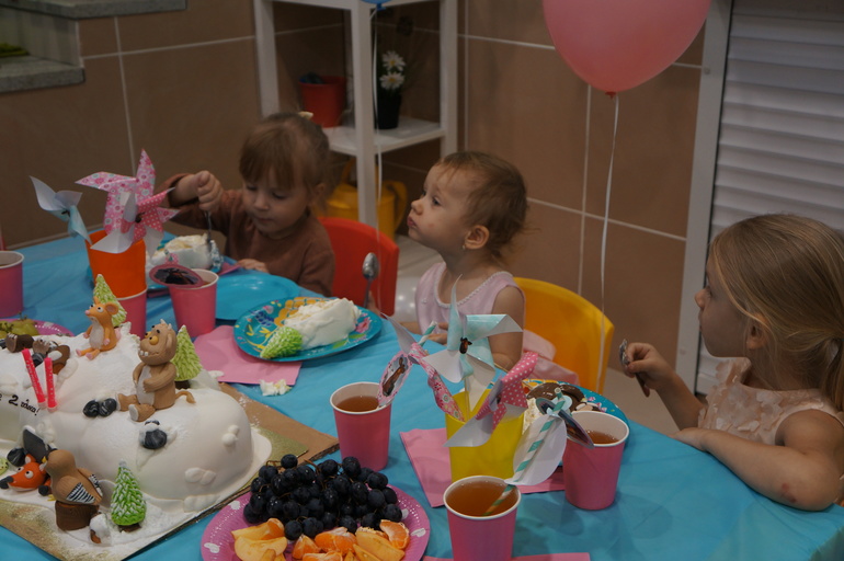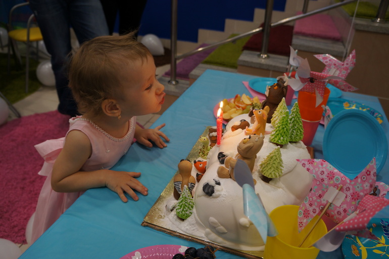 Моя малышка, свой праздник очень ждала, мы наверное с месяц по ее команде ежедневно играли в День Рождения, тортиком была пирамидка