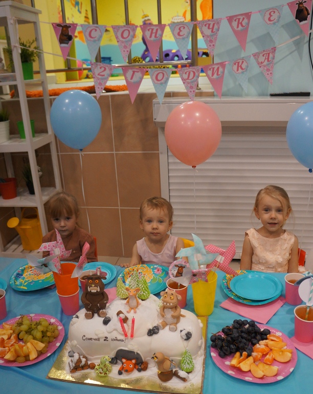 Спели каравай и задули свечи на торте. Торт Соня очень ждала, сама выбирала Груффало!