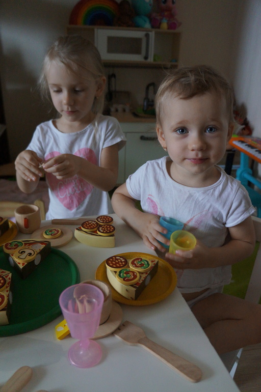 Чайный набор Plan toys, ой какое все миленькое в нем, дерево как всегда отличное, в сахарнице 2 кусочка сахара, чашечки с блюдечками, чайные пакетики и ложечки. Теперь Соня нас потчует чаем с пиццей каждый день))) и друг друга с Дашулей! Радует, что нравится сюжетная игра и Дашеньке!
