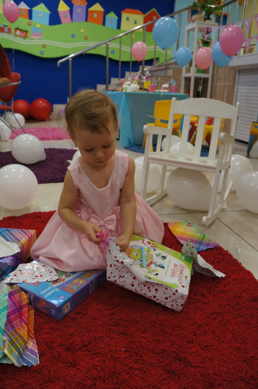 . Сонечка конечно все открыла, очень ей по душе распаковывать подарки, бумага летела во все стороны