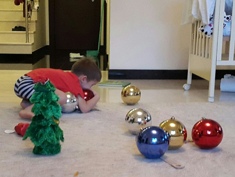 Для малышей процесс украшения елки тоже может быть очень интересным.