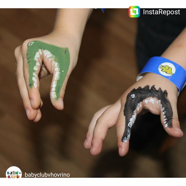 3. Рисунки на руках в виде динозавров, которые потом кусали друг друга.