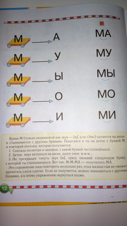 В этом (Логопедическом букваре) тоже есть наглядная демонстрация образование слогов, тут уже буквы сами ездят на досточках. Хотя мне и идея с бегуном в Букваре Н. С. Жуковой тоже понравилась. Но, видимо, сыну ближе такие дощечки на колесах ( видимо они напоминают машины):