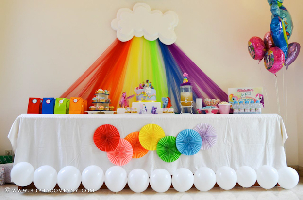 В этом году решили отмечать в детской студии, но с оговоркой что будет место для взрослого стола. Т.к. приглашаются не только дети, но и взрослые. Пока остановились на одной студии. Там одно помещение поделено на две зоны, игровая и где накрывается стол. Стол накроем своими силами, скорей всего это будут пироги и роллы заказные, салатики приготовлю сама. Так же хочу сделать сладкий стол. День рождение будет с стиле My little pony, дочка без ума от них, а именно пони радуга. Немного фото идей из интернета