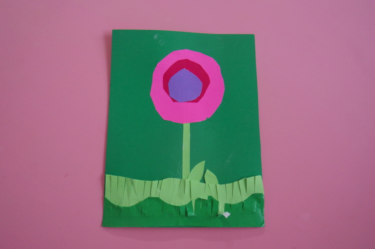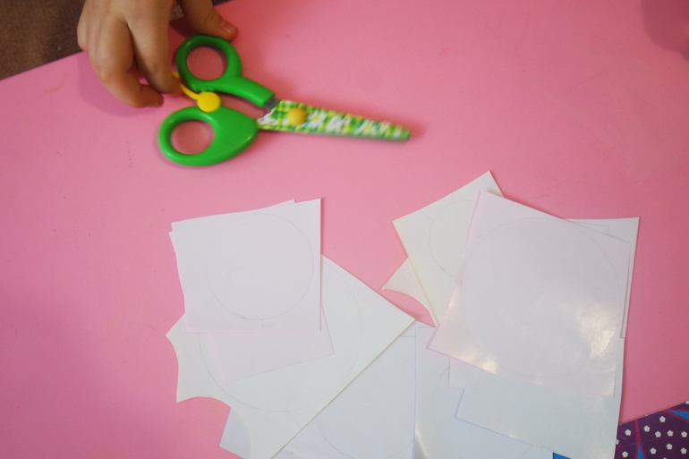 Я вырезала кружки и стебель. Лиза сложила кружечки пополам.