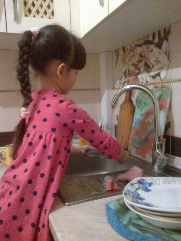 Просто о детках)Дождалась я таки))) Сама начинала "мыть посуду" года в 4 точно. До сих пор вспоминаем с мамой чайный сервиз, который я весь перебила)