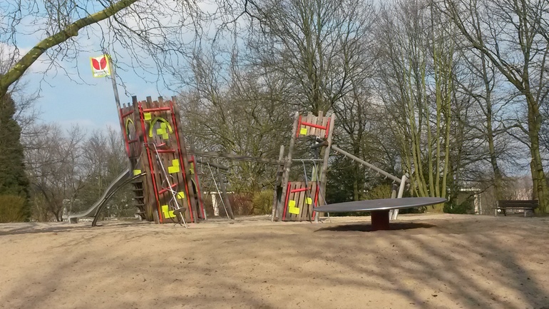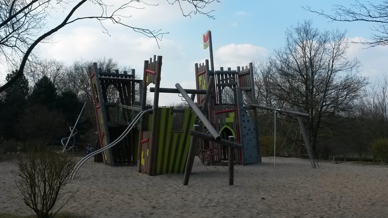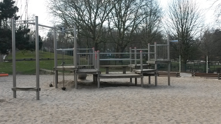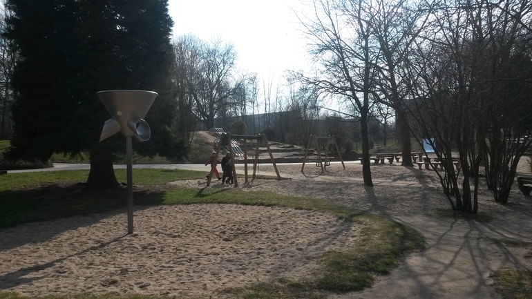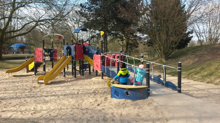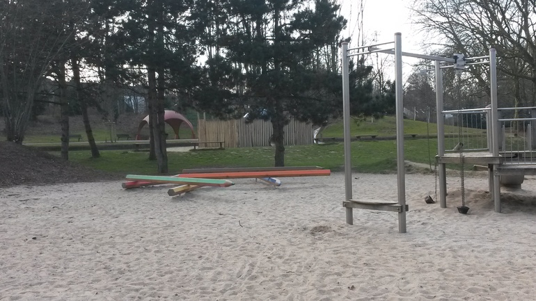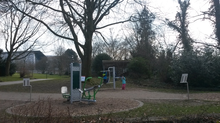 В парке стоят тренажеры. Это вообще очень модное явление в парках Германии, особенно в курортных зонах. Многие немцы предпочитают душным фитнесс-клубам бег на свежем воздухе. Есть те, кто бегает и с колясками. Хотя тренажеры-это не детская площадка и детям не по размеру, но дети так увлеклись. А я не стала их подгонять- пусть преобщаются к здоровому образу жизни.