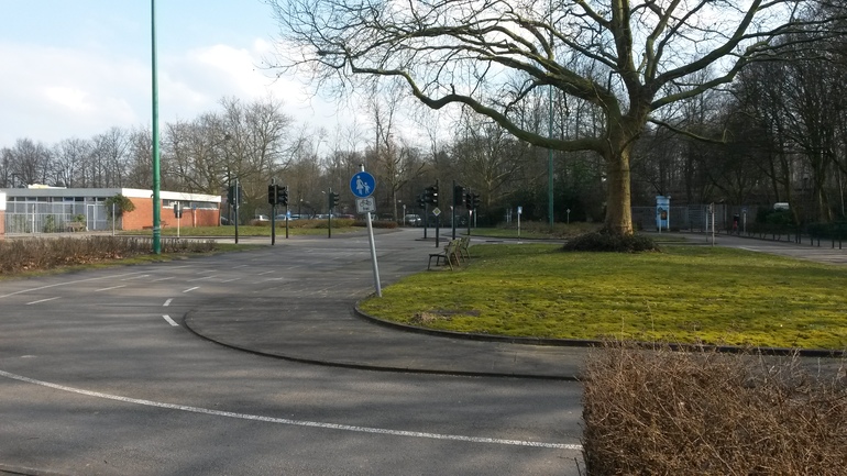 А это детская площадка-обучалка правилам дорожного движения. Вчера она была закрыта. Но летом на ней движуха. Дети на велосипедах (конечно же в шлемах) ездят по дороге, обращая внимяние на знаки, сфетофоры и дорожную разметку.