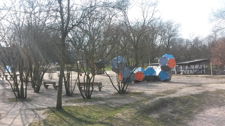 Небольшой обзор площадки. Многогранники для лазанья. Туда не так легко залезть на самом деле.