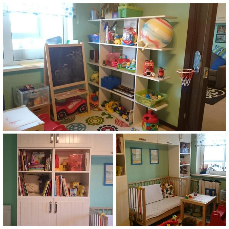 (только у нам всего 4 дверцы). На верхних полках книжки стоят, за дверками - краски, пластилин и все такое для творчества, лего мелкое. Внизу игрушки сложены в два набора ящичков