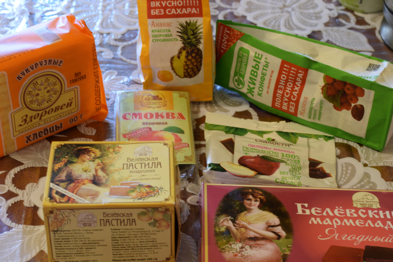 Живые конфеты, смоква, продукты белевского производства (пастила, мармелад, зефир), кукурузные хлебцы "Здоровей", правильные сладости (мармеладные конфетки).
