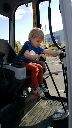 Там везде разрешают сидеть, крутить руль и дергать рычаги. Это рай доя любителей строительной техники!!
