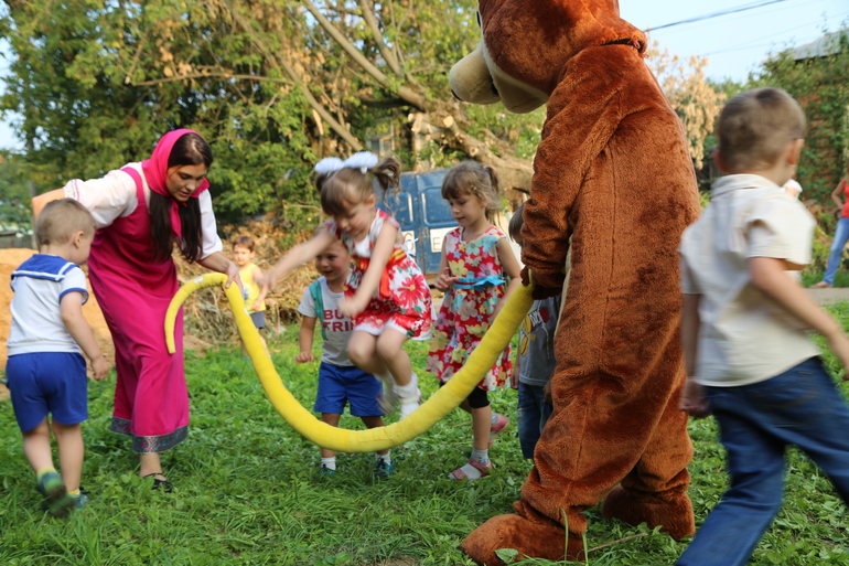 Детские праздники.Первый раз ходили на такой праздник(дочери 3,5года) до этого были попытки, но нам совсем не нравилось и приходилось уходить. Приглашено было 12 деток плюс именинник и его годовалый братишка. Детей полтора часа развлекали аниматоры_Маша и Медведь)все это снимал фотограф,затем конечно торт небольшое застолье для детей.