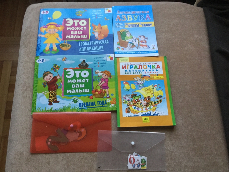 Это только половина пособий, по которым они занимаются. Все эти книжечки они носят с собой на занятия в портфеле.