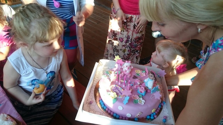 Отмечали на базе! Было 13 детей!)) первый раз такое)) столько друзей и родных! В гостях была доктор Плюшева! Хотя этот мультик уже и не смотрит! С 4 лет его смотрела, а последнее время не стала! Уже перешли на понни Вилли, пинки пай! Но захотела в гости Плюшеву пригласить!