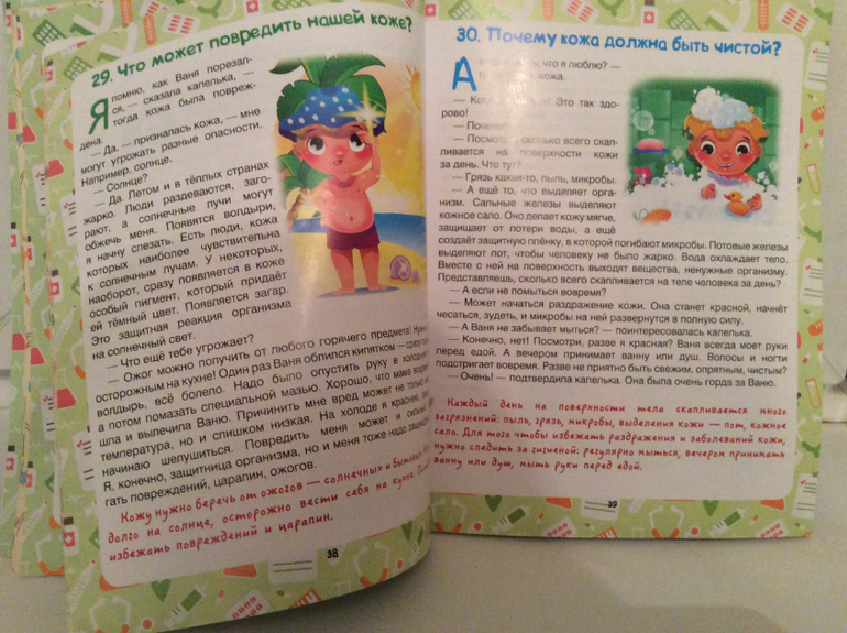 Но сам текст и то, как подаётся информация, радует! Так что рекомендую детям от трех лет примерно) Скоро отнесу ее в детский сад, воспитатель очень просила, будет с детьми изучать организм человека)