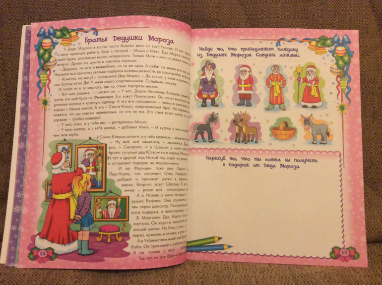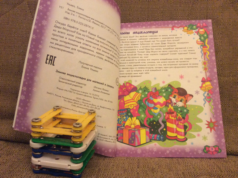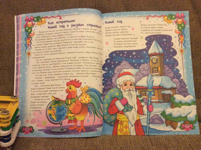 В заключение хочу сказать, что я очень довольна покупкой! Единственное, что огорчает - зотелось бы более качественную печать такой энциклопедии. Я готова была бы заплатить побольше, но чтобы она была в твердом переплете и странички, чтобы были поплотнее. Мне кажется, мы за выхолные уж точно всю книгу прочитаем, а потом еще раз к ней вернёмся. А ещё, надеюсь, она поможет пологреть интерес Никиты к Делу Морозу :)