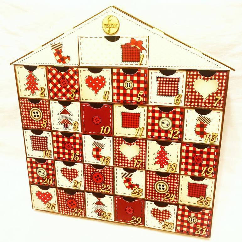 Внутри-маленькие игрушечки и сладостей немножечко:) в том году решила, что не поймёт особо фишки Адвента, а сейчас, в преддверии 4-х летия, надеюсь, оценит!))
