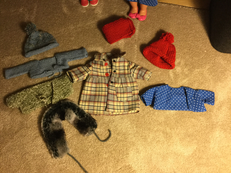 вот только малая часть одежды, сшитой/ связанной для кукол, которая хранится в таких симпатичных чемоданчиках