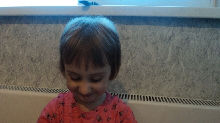 У нас проблема!Растет истинная дочь своей матери.Отчекрыжить волосы-как нефиг делать!Спрашиваю-Зачем?-"Хочу,чтоб у меня были короткие и толстые волосы.".Что это значит-знает лишь Аня...А пока так.В садик повели,потому что сидеть сегодня некому,вечером пойдем в парикмахерскую,будем пытаться исправить.Есть какие то предложения,как можно поправить?