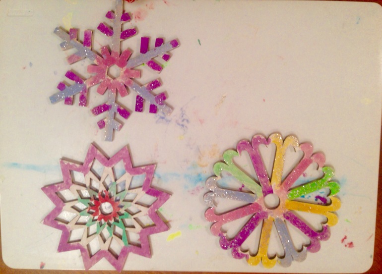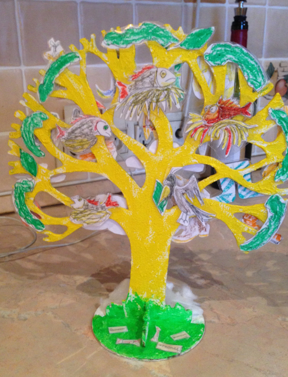 У нас обычно тема какая-нибудь есть, или Осень или Новый год. На новый год делали елку из макарон, из макарон вообще можно очень много всего придумать, тут уж по выбору вашей дочки.