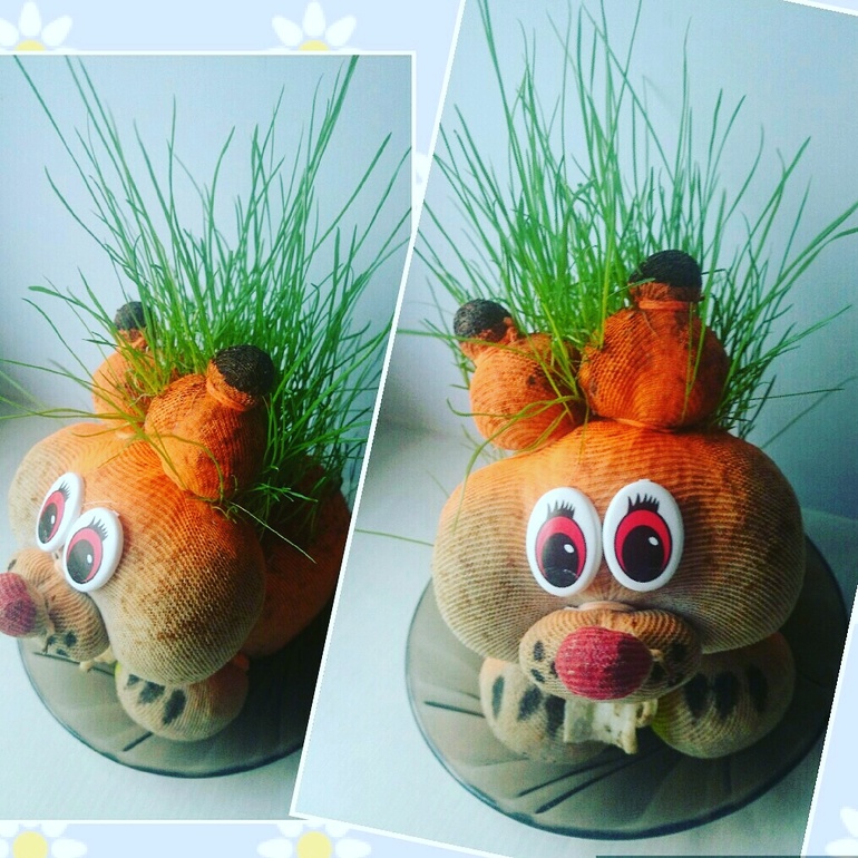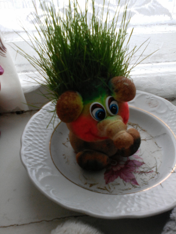 Вот такой травянчик у нас поселился! Дочка в восторге)) Интересно, долго он живет?) Травка на нашей белке очень долго прорастала, я уже думала, что и не вырастет, но сейчас ничего, вроде, густеет. Глядя на эту травку, подумалось, а может лук зеленый на подоконнике вырастить?)