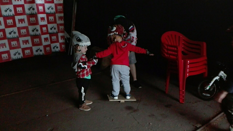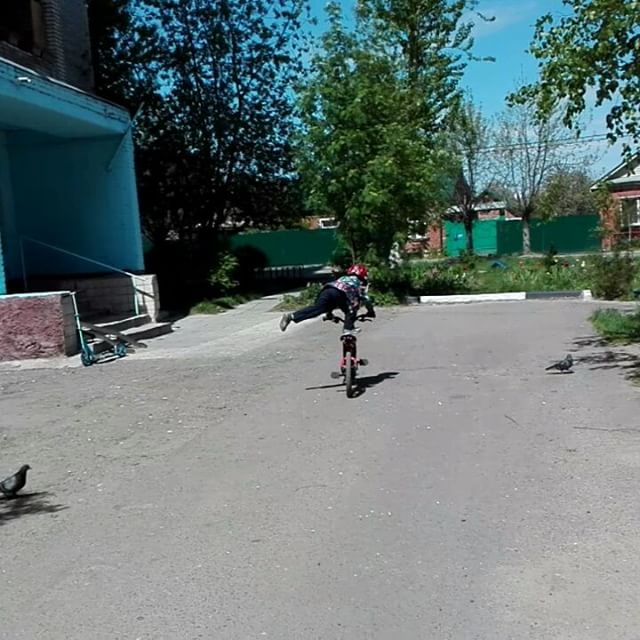 Да, из успехов, дома он научился на велосипеде делать ласточку, а на тренировке научился делать хлопок руками (отрывать обе руки от руля и делать хлопок). Осталось всё это хорошенько закрепить!