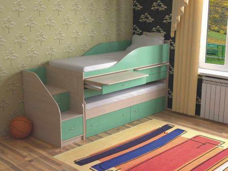 Сразу два спальных и два рабочих места. Спальные места взрослые (80х190). Подобных вариантов много, у нас этой серии все кровати)) Очень удобно и компактно)) Правда и стоит 22 тысячи. Но зато не нужно ломать голову куда поставить столы и т.п. http://www.fabrika-garmoniya.ru/product/3587/