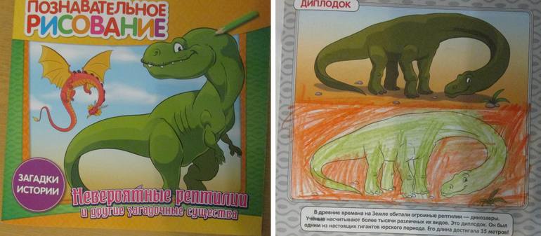 - сначала разукрашиваем лист с картинками динозавров