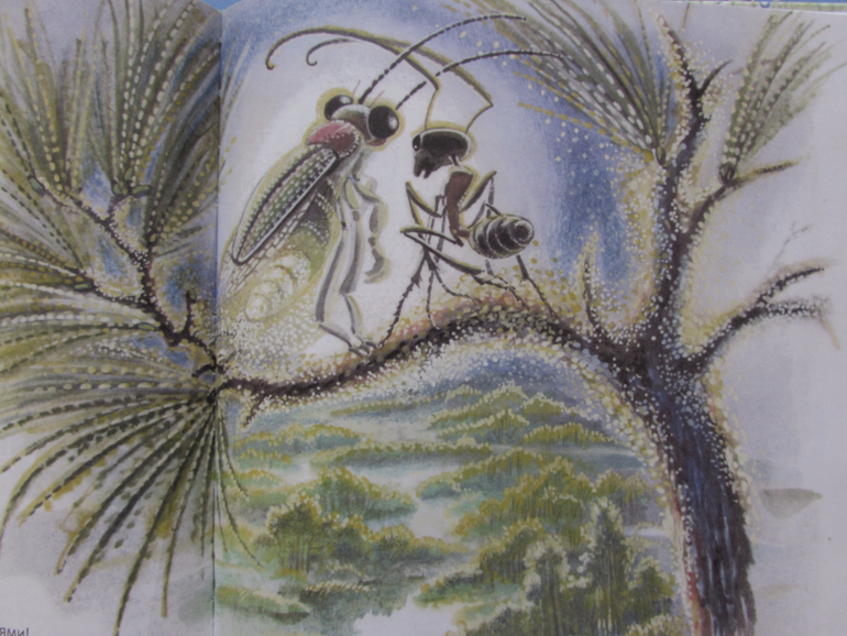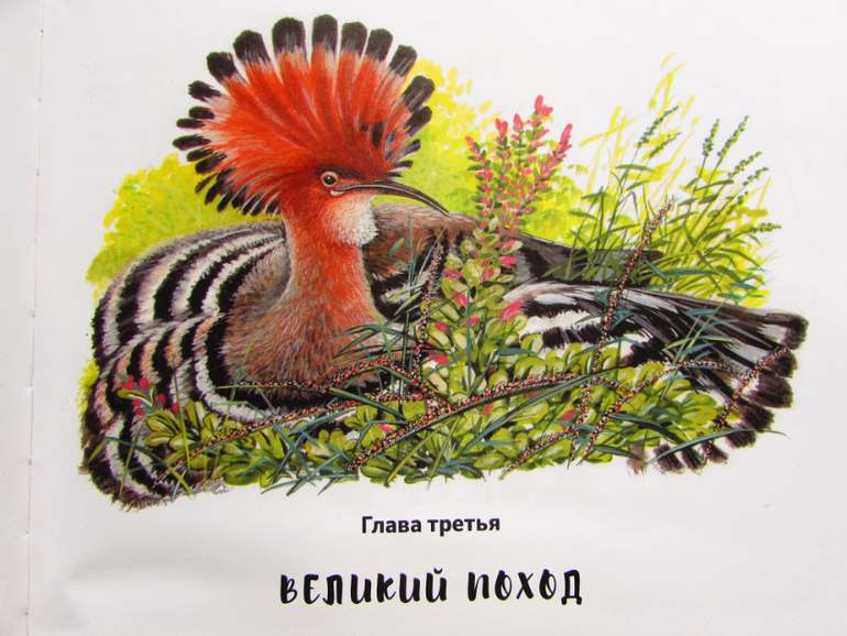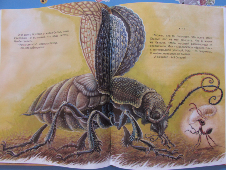 Книга полностью иллюстрированная, рисунки на каждой странице. Есть развороты и вообще без текста. И надо сказать, что изображения животных, птиц и насекомых очень реалистичны.