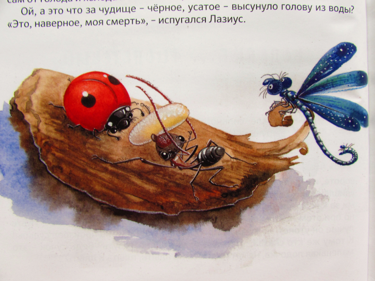 В сказке молодой муравей Лазисус знакомится со многими представителями лесного мира, изучая, у кого какие ноги, крылья и глаза. Ему на пути встречаются Водолюб Черный, который на самом деле фиолетовый, хозяин леса - Медведь, Ёж, Барсук, Светлячок.