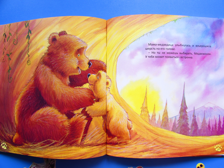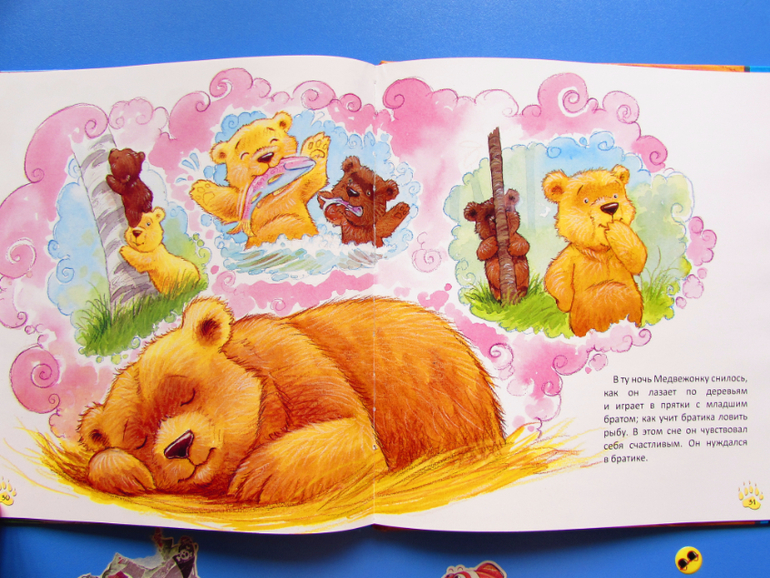 Медвежонок с радостью представляет, как он будет играть с младшим братиком или сестренкой. Кстати это оказалась сестренка)
