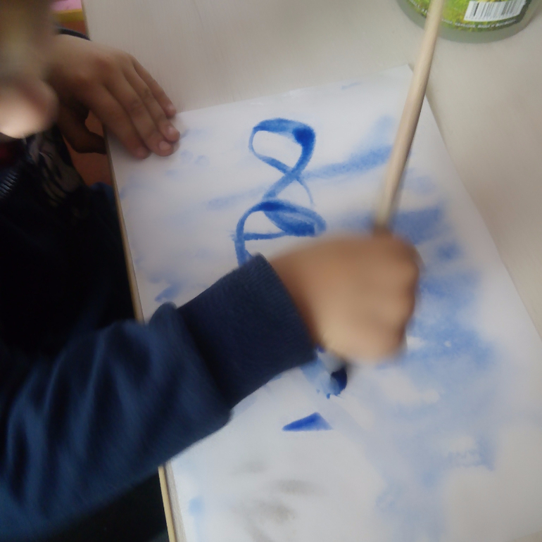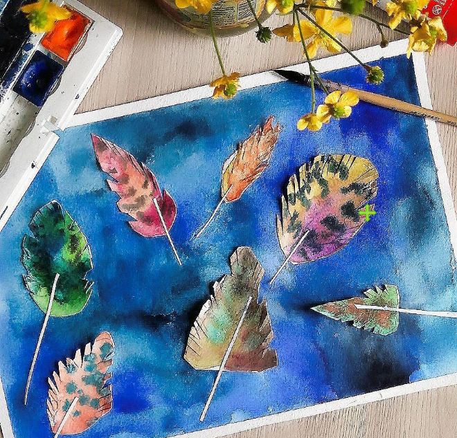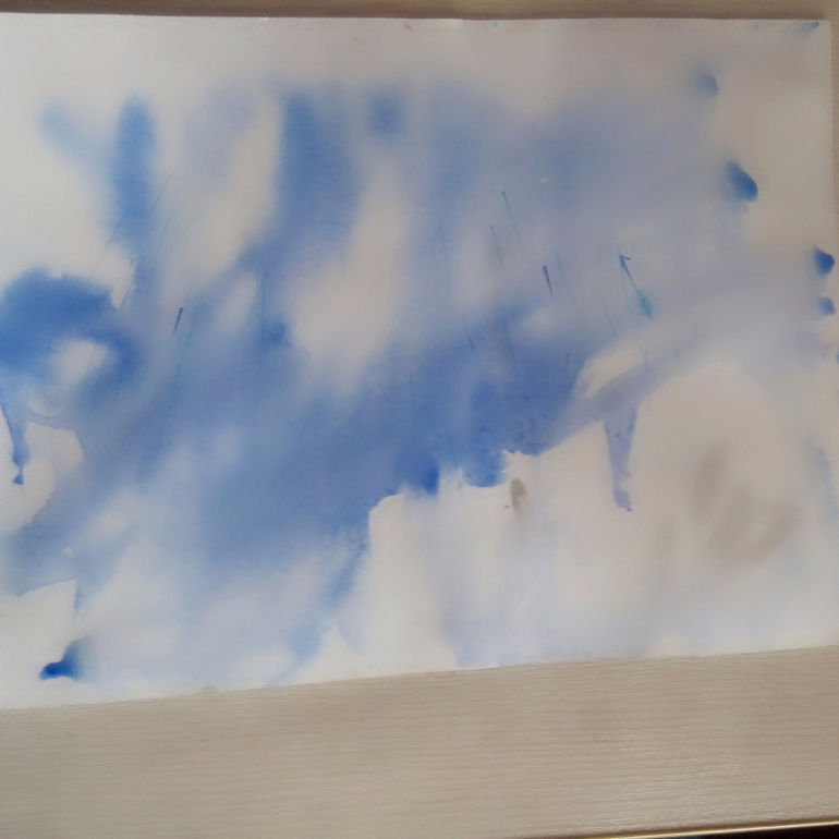 Познакомились с техникой акварель по мокрому. Намочил лист и капали краской, а потом наклоняли лист, чтобы краска побежала.