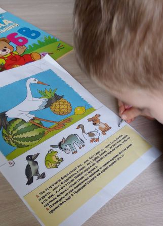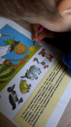 Еще интересное задание нашла взято из рабочей тетради «Уроки грамоты для малышей 3+». Звук А. Задание состояло в поиске звука а в названии предметов изображенных на картинке, поиске лишнего предмета, в данном случае лимона. А после поиск такого же звука в произношении животных. Например ослик - иа, собака гав,гав и тп.